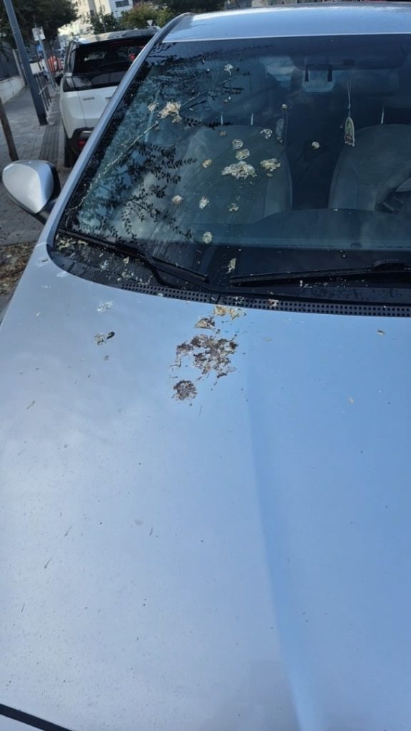 מבקש כבר בפעם השלישית לגזום את העץ מעל חניה מספר חמש אני סובל בזה בצורה מאוד בעייתית מצרף תמונה של מה שאני מוצא כל בוקר על הרכב